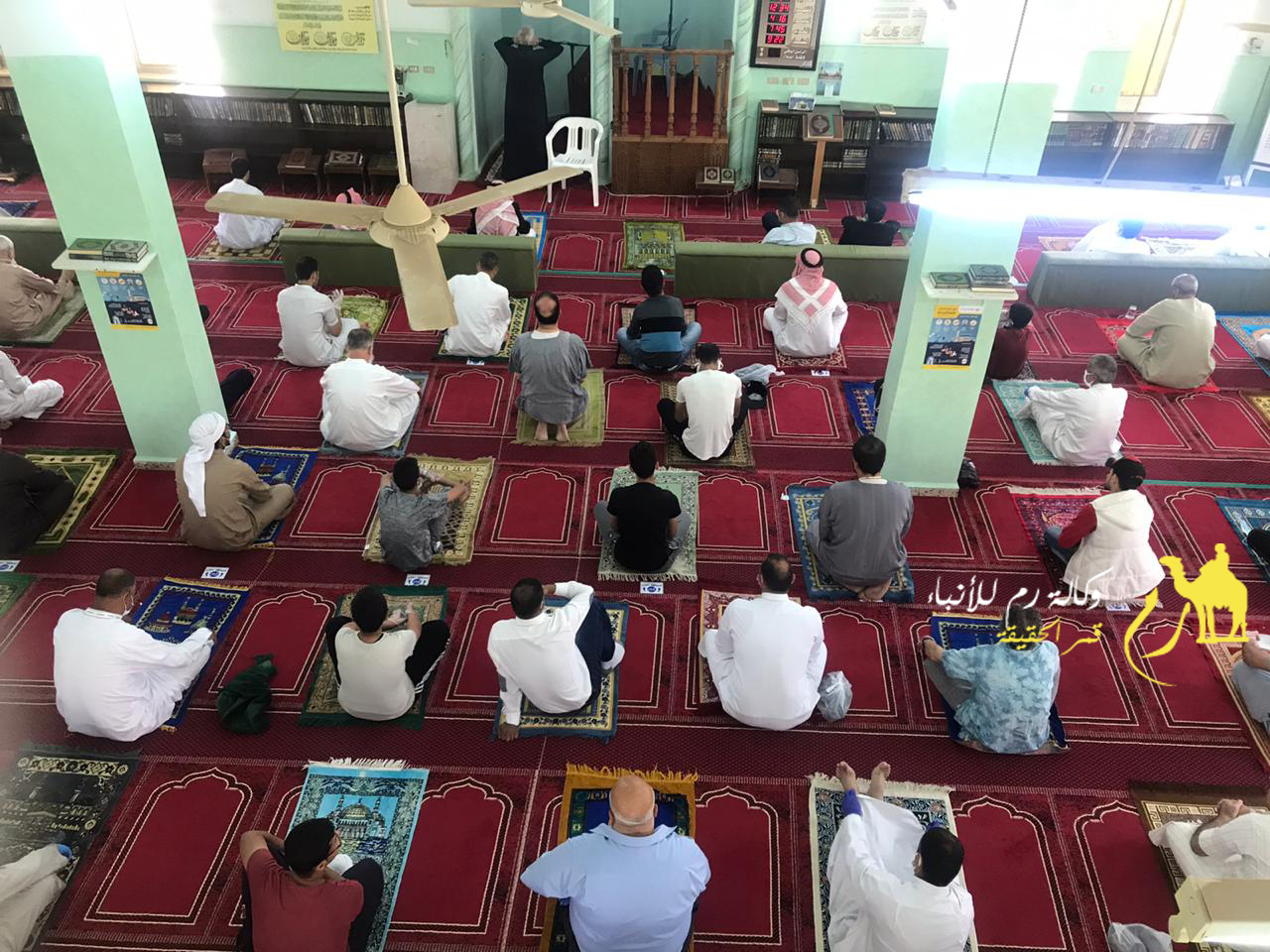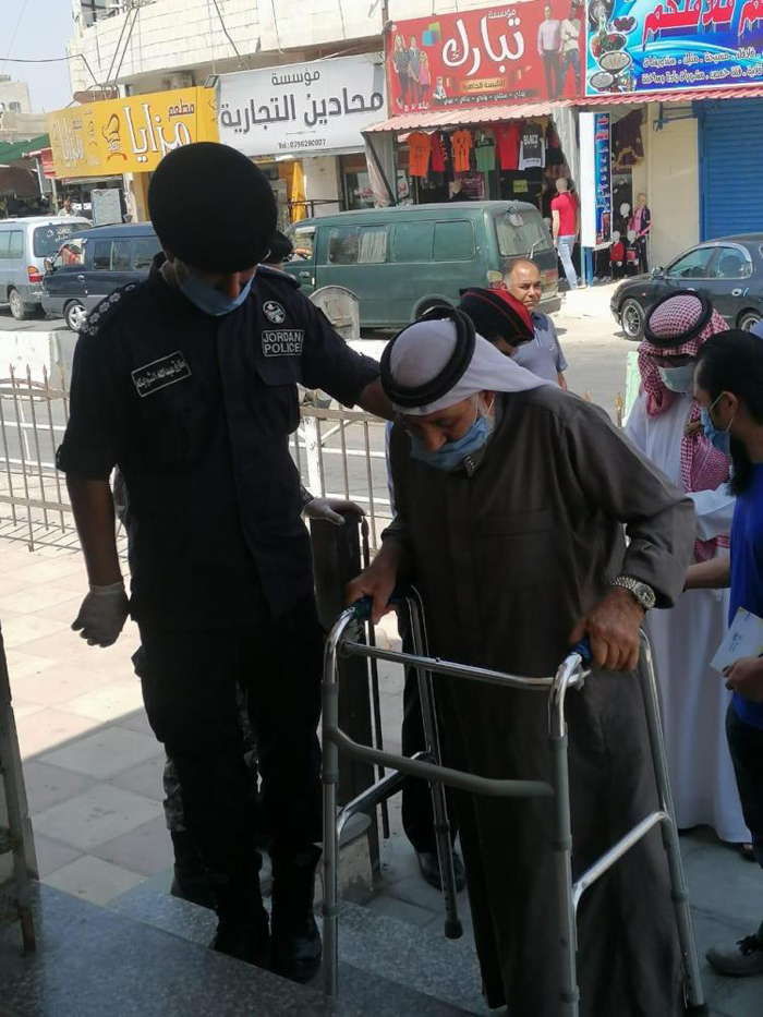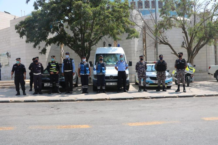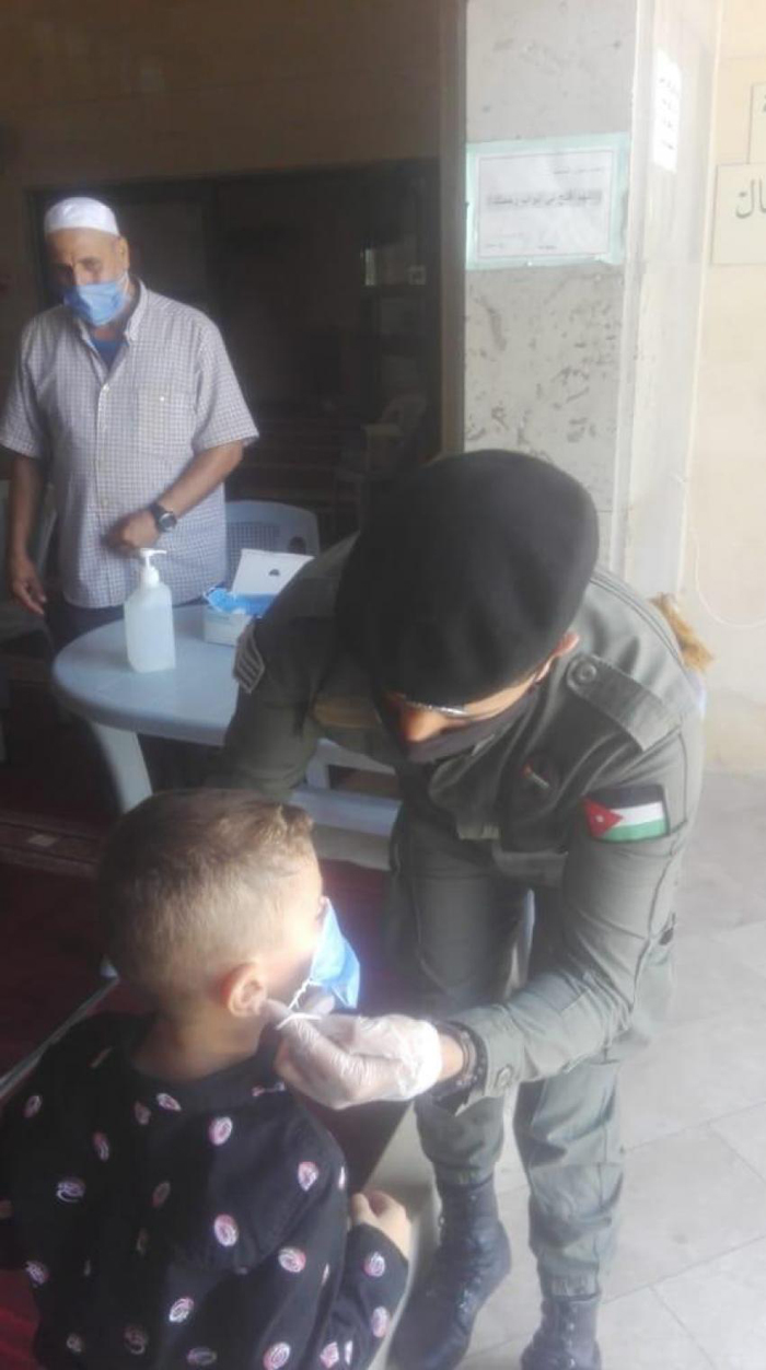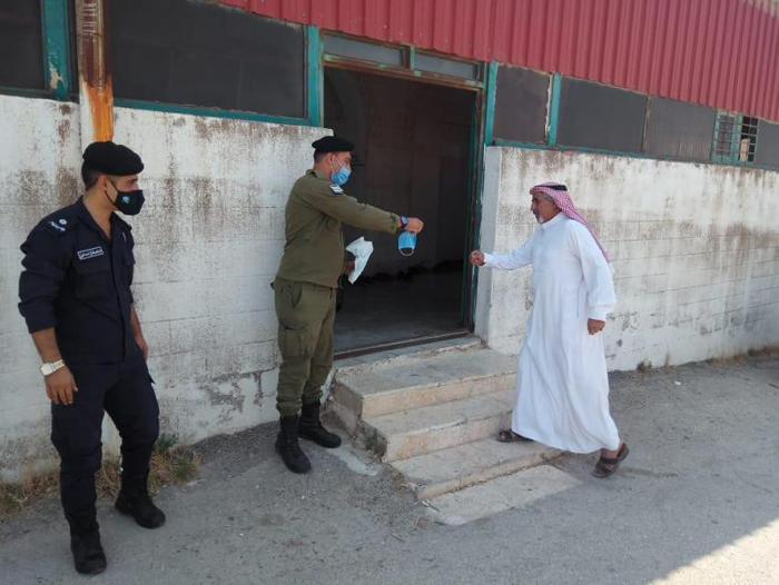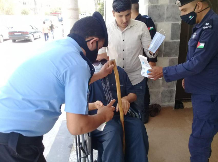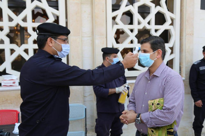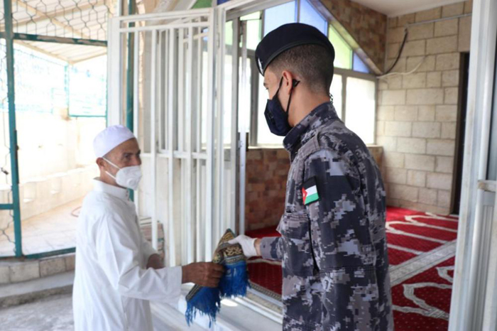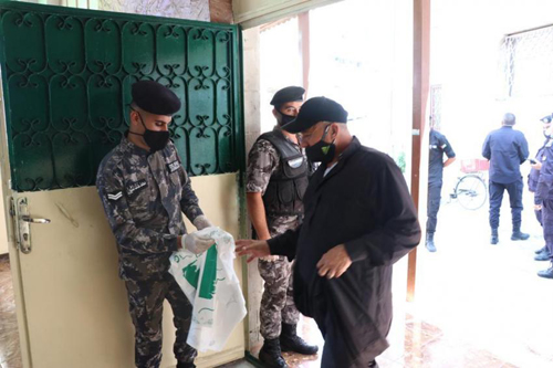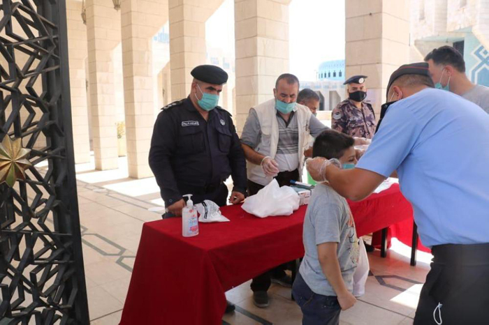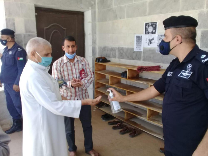 كما وقام رجال الامن العام بتوزيع وسائل السلامة العامة من كمامات ومعقمات على المصلين ، واظهر المصلين استجابة كبيرة مع رجال الامن العام والتزام بقواعد السلامة والصحة العامة
