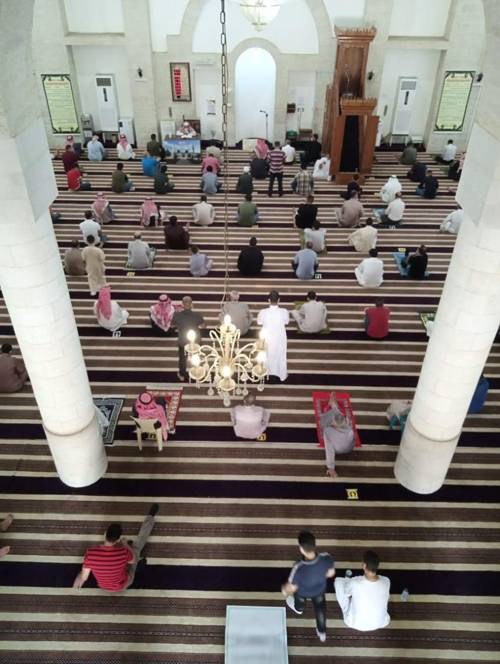 و يأتي الانتشار الامني الواسع للرقابة على مدى الالتزام بالاجراءات الصحية ونشر التوعية الصحية والحث على الالتزام بكل ما صدر من تعليمات صحية خاصة داخل المساجد .