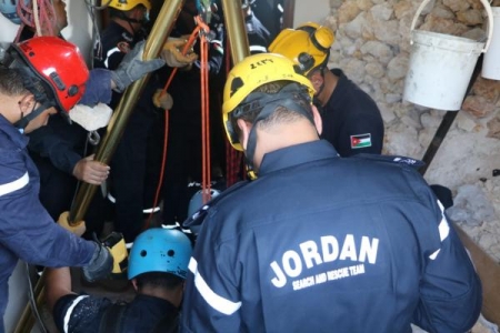 وعملت فرق الانقاذ في مديرية دفاع مدني شرق عمان وبإسناد من فريق البحث والإنقاذ الأردني وباستخدام المعدات الخاصة بمثل هذا النوع من الحوادث من اخراج جثة الشخص.