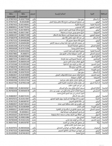 وتالياً البؤر وفق المركز: