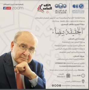 يطلق رئيس الوزراء الأسبق طاهر المصري مذكراته تحت عنوان (الحقيقة بيضاء..). مساء الأربعاء المقبل ١٥ أيلول في المركز الثقافي الملكي.
