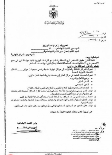 وقال البيان إنه تم الاحتجاج على هذه القرارات سابقا بكتاب خطي للوزارة موقع من قبل كافة موظفي مراكز المنار، ولم يتم الرد من قبل وزارة التنمية على الكتاب وقوبل بإهمال متعمد.