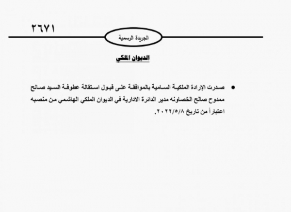 ارادة ملكية بقبول استقالة مدير الدائرة الادارية في الديوان
