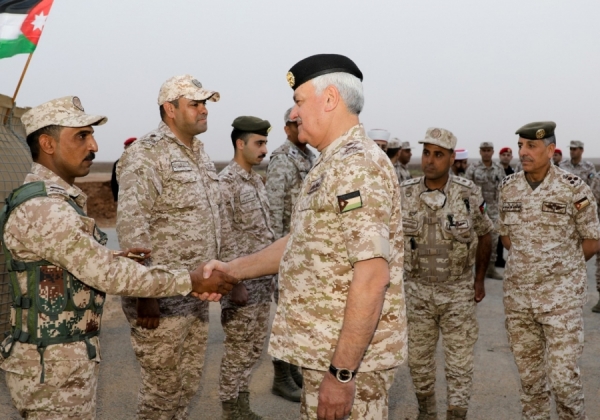 وجال رئيس هيئة الأركان المشتركة على واجهة الكتيبة، واطلع على آلية عمل الأبراج وأجهزة المراقبة المستخدمة في الكتيبة، معرباً عن ثقته بقدرات منتسبي وحدات حرس الحدود بالوقوف بالمرصاد أمام كل من تسول له نفسه المساس بالأمن الوطني الأردني ومقدراته والوقوف صفاً واحداً في وجه كل من يحاول العبث بأمنه واستقراره بكل قوة وحزم.