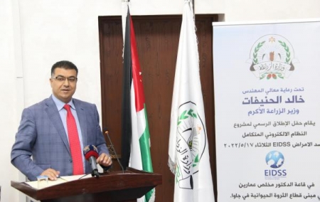 الرأي نيوز - أطلق وزير الزراعة، المهندس خالد الحنيفات، الثلاثاء، مشروع النظام الإلكتروني المتكامل لرصد الأمراض (EIDSS)، الممول من الوكالة الأميركية، لخفض التهديدات (DTRA).