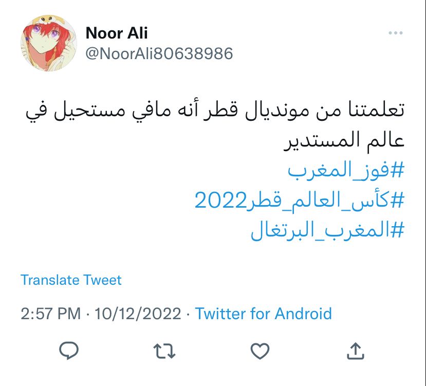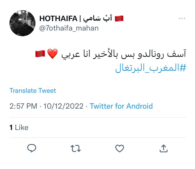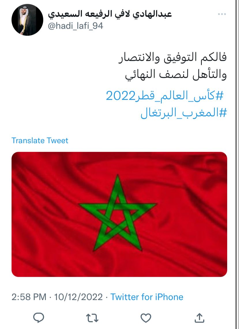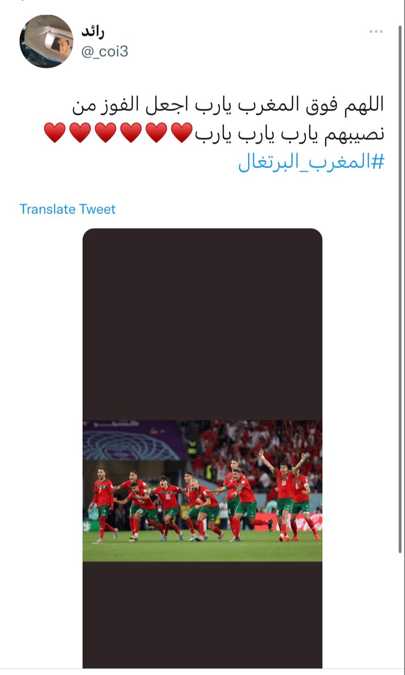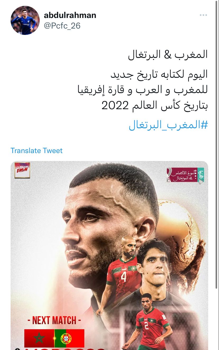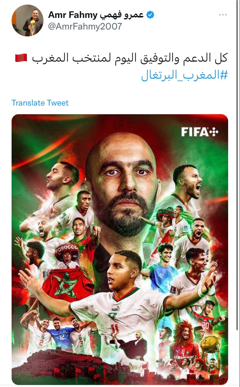 وعبر المغردون من العرب عن تضامنهم مع المنتخب المغربي في مباراته ضد البرتغال