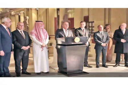 كما أشار إلى أن تنظيم مثل هذا الحفل وفي رحاب المتحف المصري العريق، هو خير دليل وشاهد على ما تقدمه مصر من أجل حماية تراث وحضارة العالم، لافتاً إلى الإنجازات التي تشهدها مصر في جميع القطاعات، والازدهار الذي طال مجالات حيوية، في مقدمتها المشروعات السياحية والأحداث الكبيرة المتصلة بإبراز التراث والحضارة التي تحتضنها أرض الكنانة وما تضمه من شواهد على آلاف السنين من الحضارة وتراث الأمم وآثارها، تعكسها اليوم مدن أثرية ومتاحف ذات قيمة إنسانية وثقافية وسياحية كبيرة