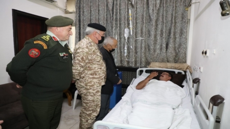 ونقل العيسوي واللواء الركن الحنيطي، تمنيات جلالة الملك عبد الله الثاني للمصابَين بالشفاء العاجل، وتوجيهات جلالته بتقديم جميع أشكال الرعاية الصحية والعلاجية اللازمة لهما.
