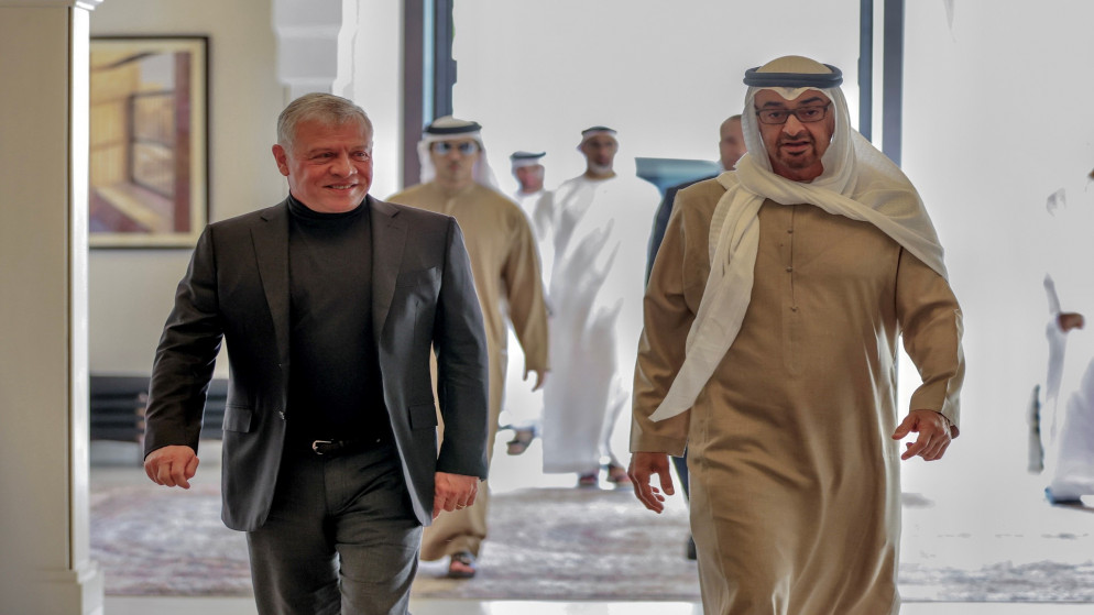 وعقد جلالة الملك عبدالله الثاني وسمو الشيخ محمد بن زايد آل نهيان رئيس دولة الإمارات العربية المتحدة لقاء أبوظبي، الأربعاء، "تناول العلاقات الأخوية والأوضاع بالمنطقة"