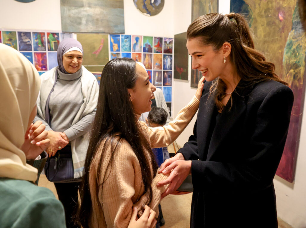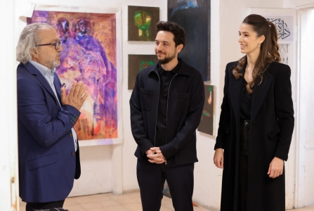 واطلع سمو الأمير والآنسة رجوة على أعمال الطلبة الإبداعية، خلال ورشة عمل بدارة الفنان التشكيلي سهيل البقاعين في جبل اللويبدة في العاصمة عمان
