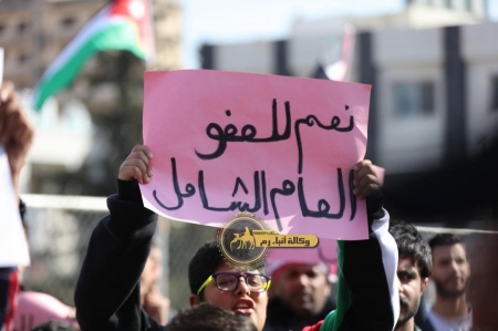 ونوه الفايز خلال لقاء المعتصمين المطالبين بإصدار عفو عام أمام مجلس النواب، اليوم الاربعاء، أنه سيبذل جهودًا إضافية مستقبلًا صوب تحقيق جميع مطالبهم بالكامل المتعلقة بالضغط على منح الأمر صفة الاستعجال
