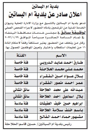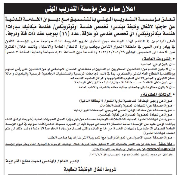 الرأي نيوز - أعلنت عدد من الوزارات والمؤسسات الحكومية اليوم الخميس، بالتنسيق مع ديوان الخدمة المدنية، عن حاجتها لتعيين وتعبئة وظائف شاغرة