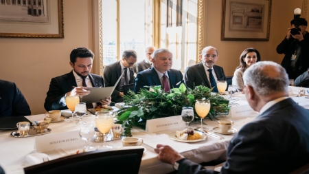 التقى جلالة الملك عبدالله الثاني، الخميس، قيادات مجلس الشيوخ الأميركي، بحضور سمو الأمير الحسين بن عبدالله الثاني، ولي العهد