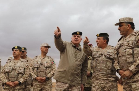 وجال رئيس هيئة الأركان المشتركة على واجهة المنطقة العسكرية الشرقية، واطلع على آلية عمل الأبراج وأجهزة المراقبة المستخدمة، معرباً عن ثقته بقدرات منتسبي وحدات حرس الحدود للوقوف بالمرصاد أمام كل من تسول له نفسه المساس بالأمن الوطني الأردني