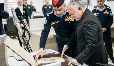 كما افتتح جلالته، خلال الزيارة، استوديوهات إذاعة الأمن العام الجديدة، إذ استمع إلى إيجاز حول أهم الخطط الإعلامية التي تضطلع بها مديرية الأمن العام من خلال حملات التوعية وتقديم المعلومات للمواطنين