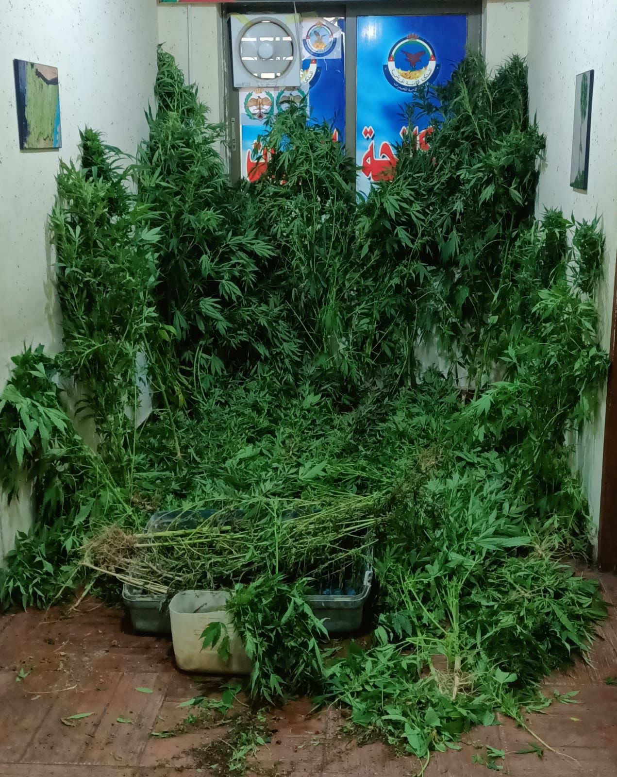 كما وتعاملت الادارة خلال ال 24 ساعة الماضية مع عدد من القضايا النوعية في العاصمة والمفرق وغرب البلقاء ففي احدى القضايا فقد دوهمت خيمة استخدمها احد تجار المخدرات لممارسة نشاطاته الجرمية بزراعة وبيع المخدرات في احدى مناطق غرب البلقاء إذ القي القبض عليه وضبط داخل إحدى الخيام كمية كبيرة من اشتال الماريجوانا التي زرعت داخلها