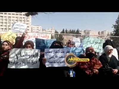 وناشدن السيدات المعتصمات جلالة الملك عبدالله الثاني لإصدار عفو عام.