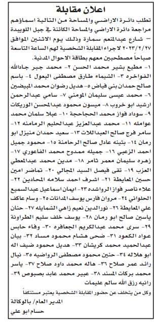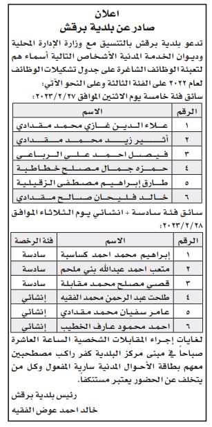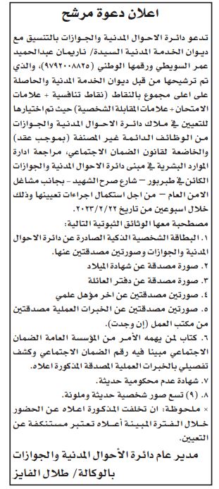 ودعت المدرجة أسماؤهم في الإعلانات المرفقة تاليا عبر موقعنا لاصطحاب الوثائق اللازمة للتعيين