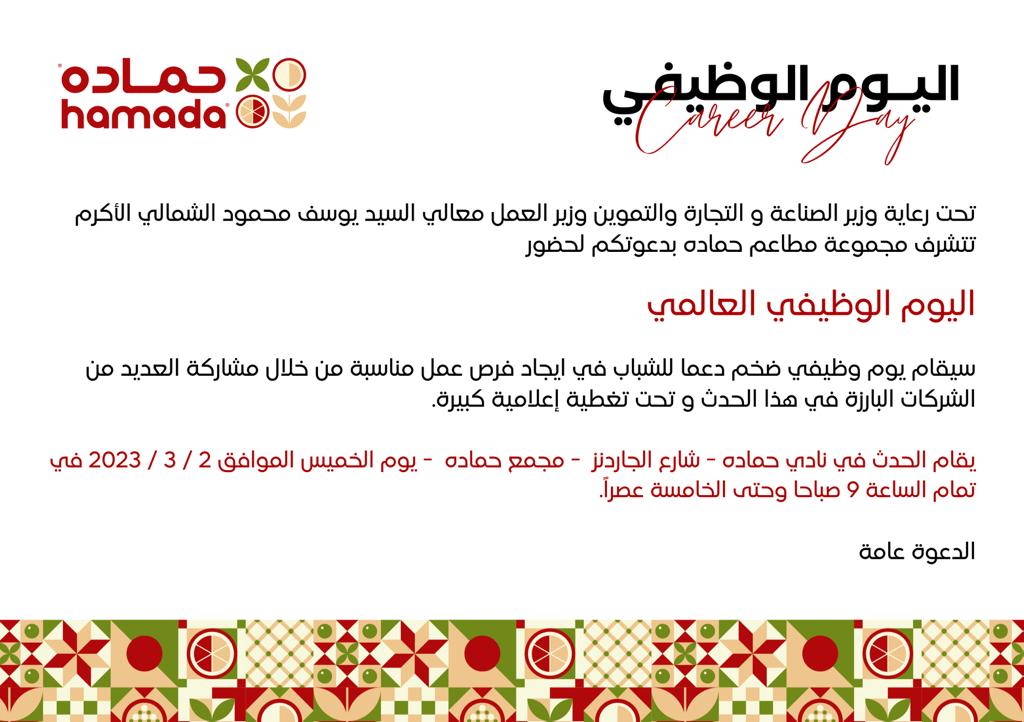 مجموعة حماده تستضيف الخميس المقبل يوم وظيفي يوفر اكثر من 500 فرصة عمل