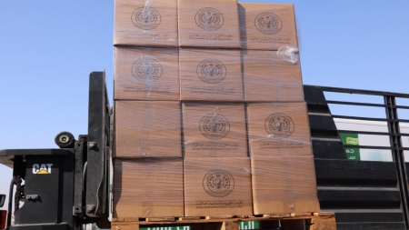 وتحمل الطائرة على متنها 11 طنا من المواد الغذائية والطرود الصحية والحرامات لإيصالها إلى منطقة هاتاي ليصار إلى توزيعها على مستحقيها من المتضررين إثر الزلازل المدمرة