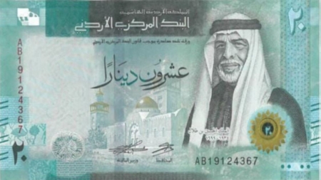 قال البنك المركزي الأردني، إنه سيبدأ بطرح الإصدار الخامس من فئة العشرين دينارا في التداول، والتي يزين وجهها صورة جلالة المغفور له الملك الحسين بن طلال، طيب الله ثراه، اعتباراً من الثلاثاء، جنبا إلى جنب مع فئة العشرين دينارا الإصدار الرابع