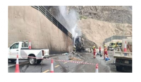 ونقلت الصحيفة عن مصادر أن الحادث وقع عصر اليوم، وأن خللاً في مكابح الحافلة أدى لاصطدامها بأحد الجسور وانقلابها واحتراقها .