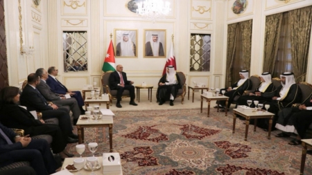 وأكّدا، خلال المباحثات في العاصمة القطرية الدوحة، عمق العلاقات التاريخيَّة والأخوية التي تجمع البلدين، وتحظى باهتمام ورعاية جلالة الملك عبدالله الثَّاني وسمو الشَّيخ تميم بن حمد آل ثاني.