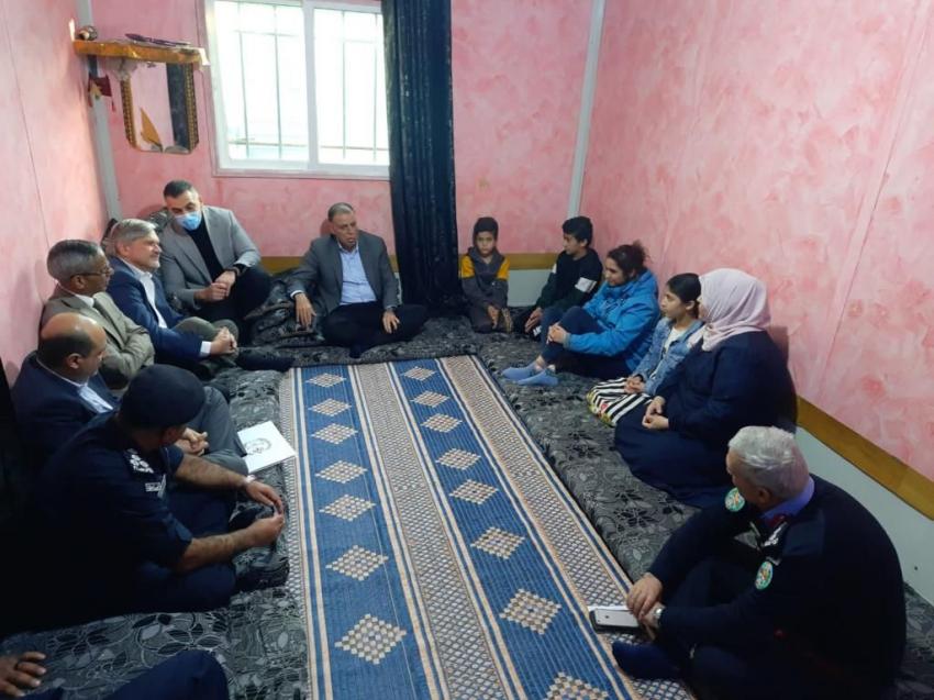 واستهل الفرايه جولته بزيارة مكاتب منظمة النهضة العربية للديمقراطية والتنمية، إضافة إلى منزل سيدة سورية لاجئة تعيل أسرتها المكونة من 4 أطفال منذ 10 سنوات لانفصالها عن زوجها، حيث استمع منها عن واقع المعيشة للاجئين السوريين والخدمات المقدمة لهم والصعوبات التي تواجههم داخل مخيم الزعتري.