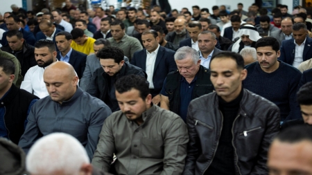 أدى جلالة الملك عبدالله الثاني وسمو الأمير الحسين بن عبدالله الثاني ولي العهد صلاتي العشاء والتراويح في مسجد التوحيد بعمان.