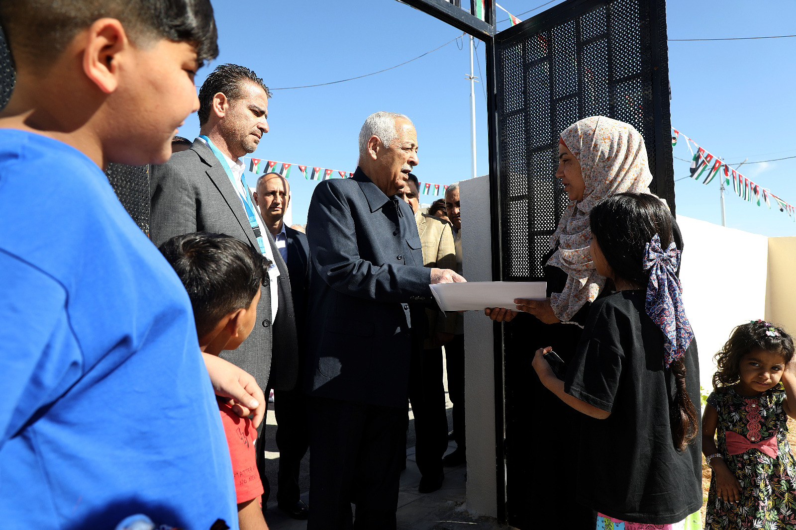 وسلم رئيس الديوان الملكي الهاشمي يوسف حسن العيسوي، رئيس لجنة متابعة تنفيذ مبادرات جلالة الملك، شهادات الانتفاع ومفاتيح المساكن للأسر المستفيدة، بحضور وزيرة التنمية الاجتماعية وفاء بني مصطفى، ومحافظي البلقاء الدكتور فراس ابو قاعود، وإربد رضوان العتوم، وأمين عام الديوان الملكي الهاشمي محمد إبراهيم الكركي.