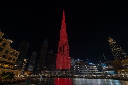 برج خليفة يضاء بألوان إيه سي ميلان في إطار حملة عالمية عنوانها "نور لا ينطفئ أبداً"