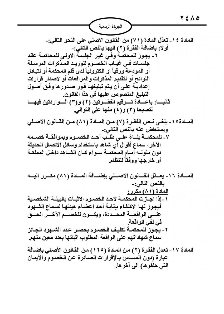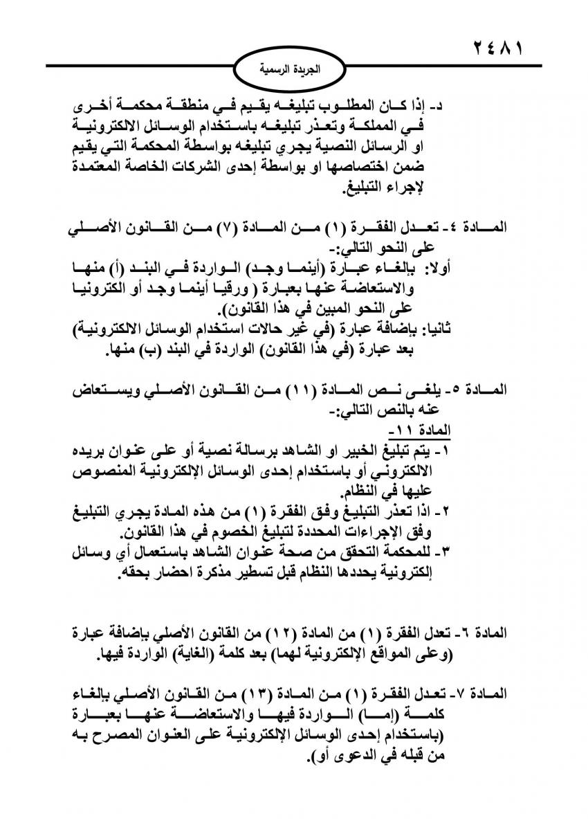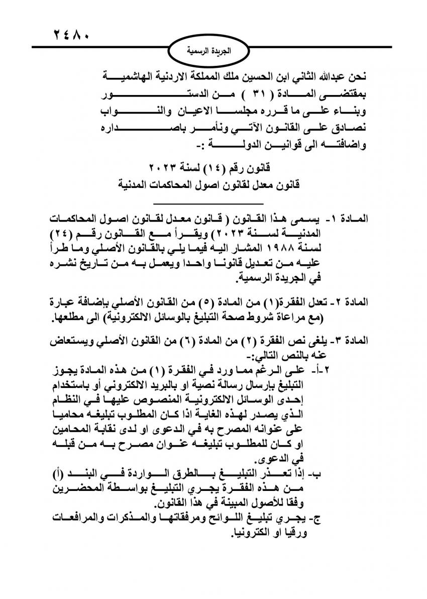 الراي نيوز  - صدر في عدد الجريدة الرسمية الأربعاء، قانون معدل لقانون أصول المحاكمات المدنية، بعد توشحه بالإرادة الملكية السامية.