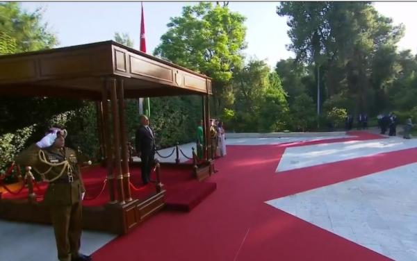وكان في استقباله ولي العهد الامير الحسين بن عبدالله والأمير هاشم بن عبدالله والأميرة سلمى بنت عبدالله، ورئيس الديوان الملكي يوسف العيسوي، ورئيس هيئة الاركان المشتركة اللواء يوسف الحنيطي.