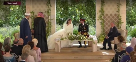 الراي نيوز - عقد إمام الحضرة الهاشمية الدكتور أحمد الخلايلة اليوم الخميس، قران الأمير الحسين بن عبد الله الثاني، ولي العهد، على رجوة السيف في قصر زهران.