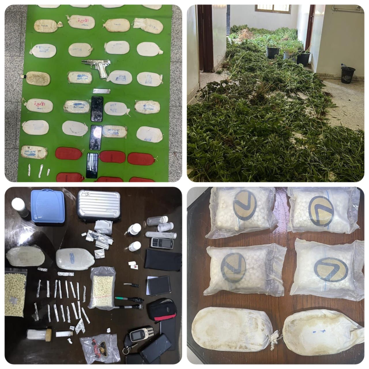 كما وجرى في احدى مناطق غرب البلقاء مداهمة منزل استخدمه مالكه لزراعة اشتال الماريجوانا والقي القبض عليه وضبطت كميات كبيرة من اشتال الماريجوانا داخل المنزل .