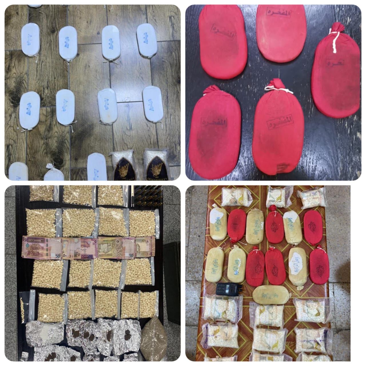 وفي محافظة المفرق جرى التعامل مع ثلاث قضايا القي القبض في الاولى على شخصين من تجار المخدرات وبحوزتهما 7 كفوف حشيش و2000 حبة مخدرة فيما القي القبض في احدى مناطق البادية الشمالية على شخصين بحوزتهما 15 كف حشيش و 2000 حبة مخدرة وفي القضية الثالثة فقد جرت مداهمة منزل تاجر للمخدرات والقي القبض عليه وضبط بحوزته 20 الف حبة مخدرة و 13 كف حشيش .