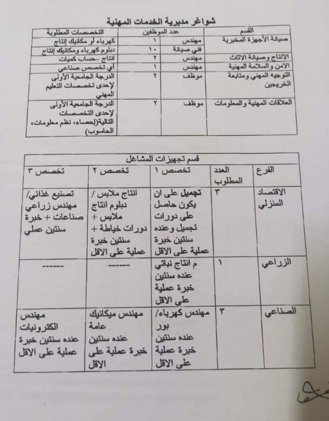 الراي نيوز - عممت وزارة التربية والتعليم على موظفيها من "الزوائد فقط” بتوافر شواغر في إدارة التعليم المهني والإنتاج لغايات النقل حسب الجداول المرفقة.
