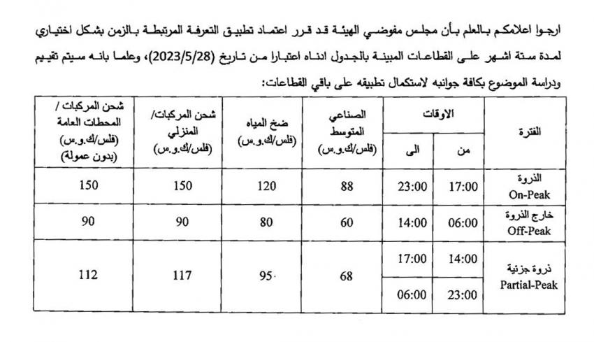 ونوه إلى أن الهيئة ستقوم بعد انتهاء المدة الزمنية البالغة ستة شهور بإعادة الدراسة وبحث مدى تطبيق "الذروة" على قطاعات أخرى.