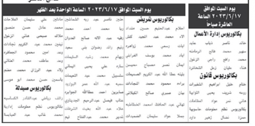 مدعوون لامتحان تنافسي (أسماء)