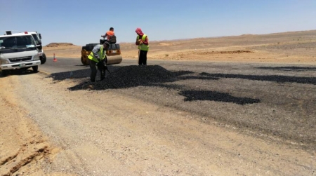 وقالت الوزارة في بيان صحفي صادر عن وحدة الإعلام والاتصال اليوم الخميس، إن اعمال الصيانة الروتينية والتي تجري بالتعاون مع مديريات أشغال محافظات الجنوب (مديرية أشغال محافظة العقبة ، ومديرية أشغال محافظة معان ، ومديرية أشغال اقليم البتراء) تشمل أعمال صيانة لسطح الطريق والأجزاء المتضررة بالخلطة الاسفلتية الساخنة كإجراء سريع اضافة لاعمال تعزيز الطريق بعناصر السلامة العامة، وذلك لخدمة المواطنين المتجهين من والى المملكة العربية السعودية من خلال مركز حدود المدورة.