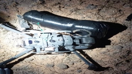 الرأي نيوز  - أسقطت المنطقة العسكرية الشرقية صباح الجمعة، على إحدى واجهاتها ضمن منطقة مسؤوليتها، طائرة مسيّرة محملة بقطع أسلحة قادمة من الأراضي السورية.