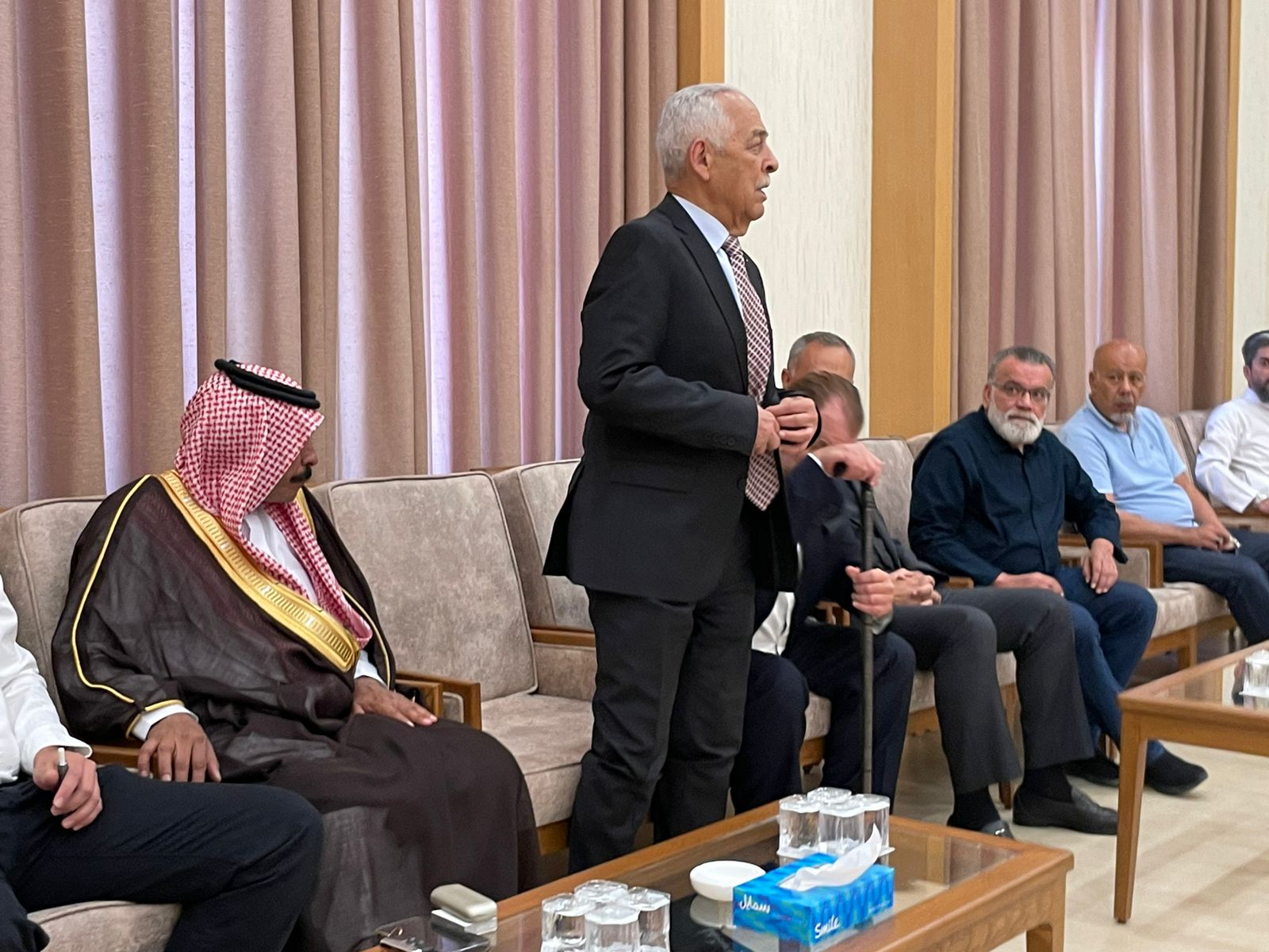 الرأي نيوز  - مندوبا عن جلالة الملك عبدالله الثاني المعظم وصاحب السمو الملكي الأمير الحسين ولي العهد قدم رئيس الديوان الملكي الهاشمي يوسف حسن العيسوي واجب العزاء بالمرحوم الدكتور محمود باسم محمود فانوس في _ محافظة العاصمه