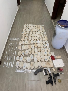 وأوضح الناطق الاعلامي انه تم ضبط خلال تلك القضايا (124 )كغم من مادة الحشيش و ( 900 ) ألفةحبة من حبوب الكبتاجون المخدرة و (8) آلاف حبة من الحبوب المخدرة و (4 كيلو) من مادة الكريستال المخدرة و 37 كغم من مادة الماريجوانا المخدرة و (24) غرام من مادة الكوكائيين المخدرة و 2 كيلو من مادة الحشيش الصناعي و 2 كيلو و 400 غرام من بودرة الحشيش الصناعي المخدرة، ومجموعة من الأسلحة النارية.