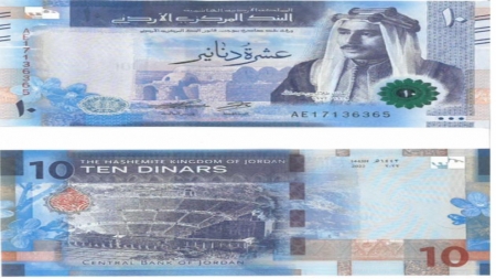 أعلن البنك المركزي الأردني عن بدء طرح فئة العشرة دنانير/ الإصدار الخامس في التداول، والتي يزين وجهها صورة جلالة الملك طلال بن عبد الله، اعتباراً من الأربعاء جنباً إلى جنب مع فئة العشرة دنانير/ الإصدار الرابع.