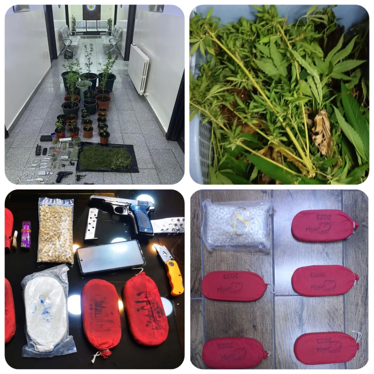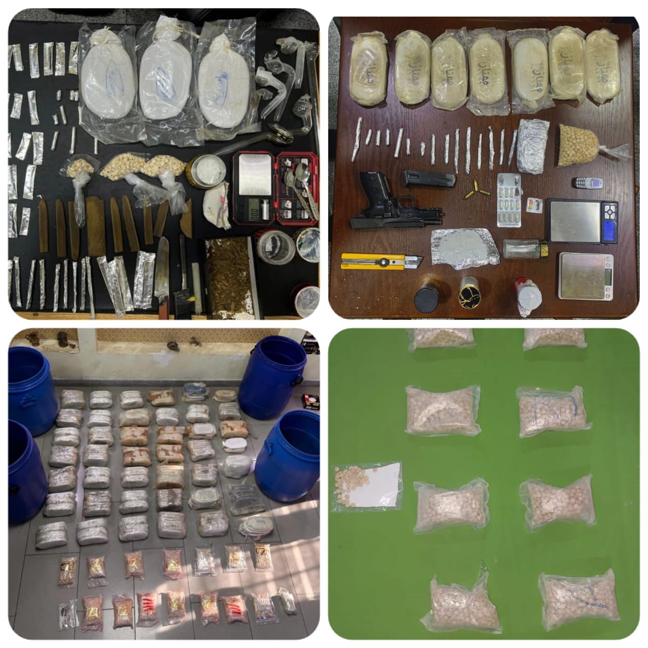 وفي لواء الرصيفة دوهم منزل احد المروجين والقي القبض عليه وضبط بحوزته 7 كفوف حشيش و 1000 حبة مخدرة وسلاح ناري ، وفي آخر القضايا في غرب البلقاء فقد أُلقي القبض على تاجر للمخدرات بعد مقاومته للقوة وضبط داخل منزله على كمية من أشتال الماريجوانا وسلاح ناري أوتوماتيكي .