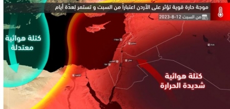 الرأي نيوز  - طقس العرب - يُتابع المُختصون في مركز طقس العرب الإقليمي عن كثب نواتج المُحاكاة الحاسوبية لحركة كُتلة هوائية شديدة الحرارة يُتوقع أن تندفع لبلاد الشام بما فيها المملكة اعتباراً من السبت القادم 12-8-2022 بإذن الله، و التي نستطيع تسميتها بـِ "الموجة الحارة" نظراً لتوقعات بإستمرارها لِعدّة أيام و كذلك تطرّف درجات الحرارة بعيداً عن مُعدلاتها المُعتادة بأكثر من خمس درجات مئوية.
