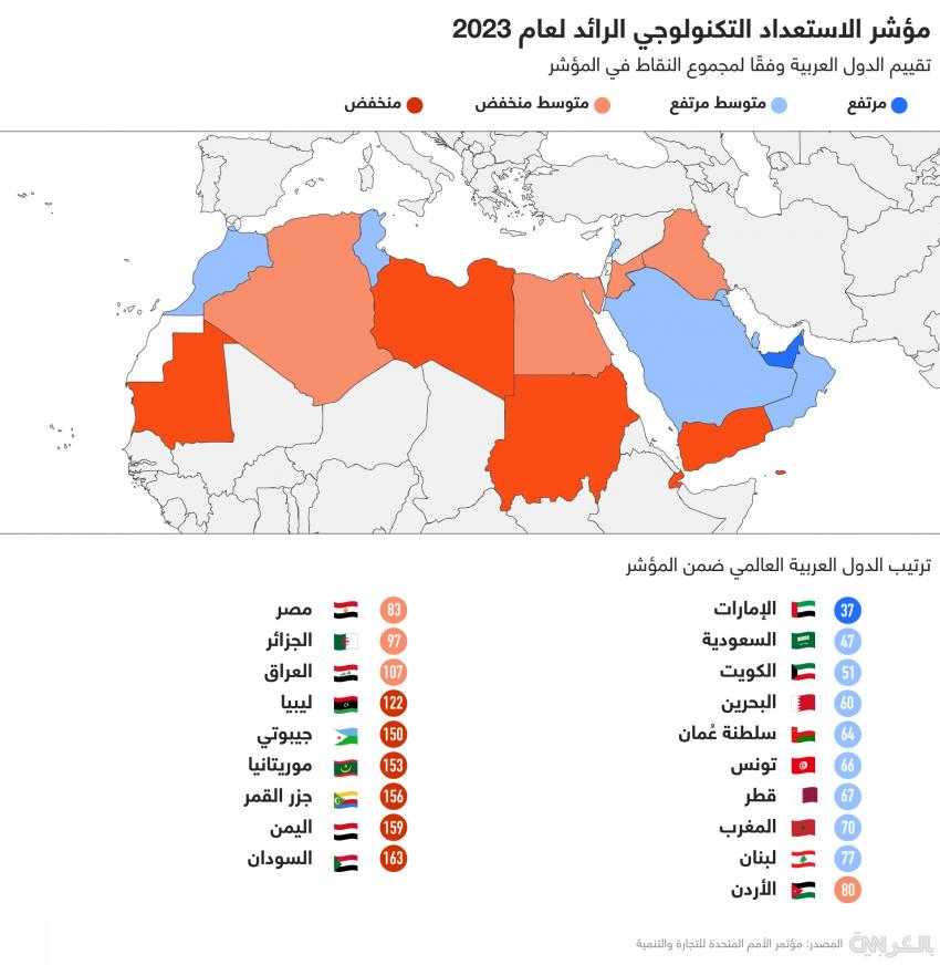 وتاليا ترتيب الدول العربية ضمن مؤشر الاستعداد التكنولوجي الرائد لعام 2023: