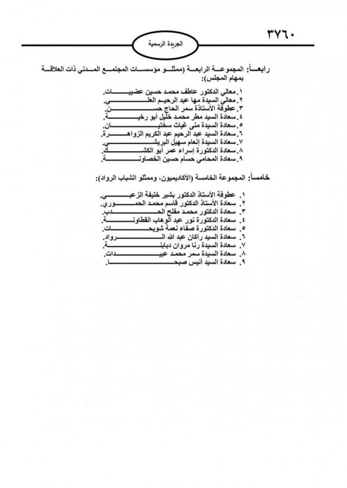 تشكيل المجلس الاقتصادي والاجتماعي - (اسماء)
