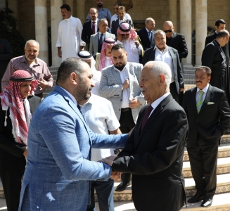 وفي نهاية اللقاء ثمن الوفد جهود جلالة الملك للنهوض بالوطن وجهوده المبذولة في الدفاع عن الحقوق العربية والقضية الفلسطينية و الوصاية الهاشمية على المقدسات الاسلامية والمسيحية . داعين الله لجلالته بطول العمر له ولولي عهده الأمين والأسرة الهاشمية الكريمة