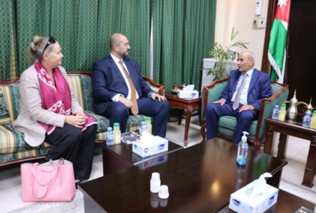 الراي نيوز  - استقبل رئيس اللجنة الوطنية لمنع الإتجار بالبشر وزير العدل د.احمد الزيادات في مكتبه اليوم السيد عادل البلبيسي المدير الإقليمي لمنظمة الهجرة الدولية ورئيسة البعثة الدولية للمنظمة في الأردن تيما كورت والوفد المرافق وبحضور امين عام وزارة العدل للشؤون القضائية القاضي د. سعد اللوزي.